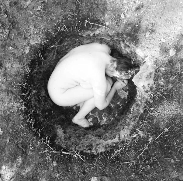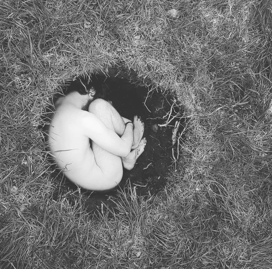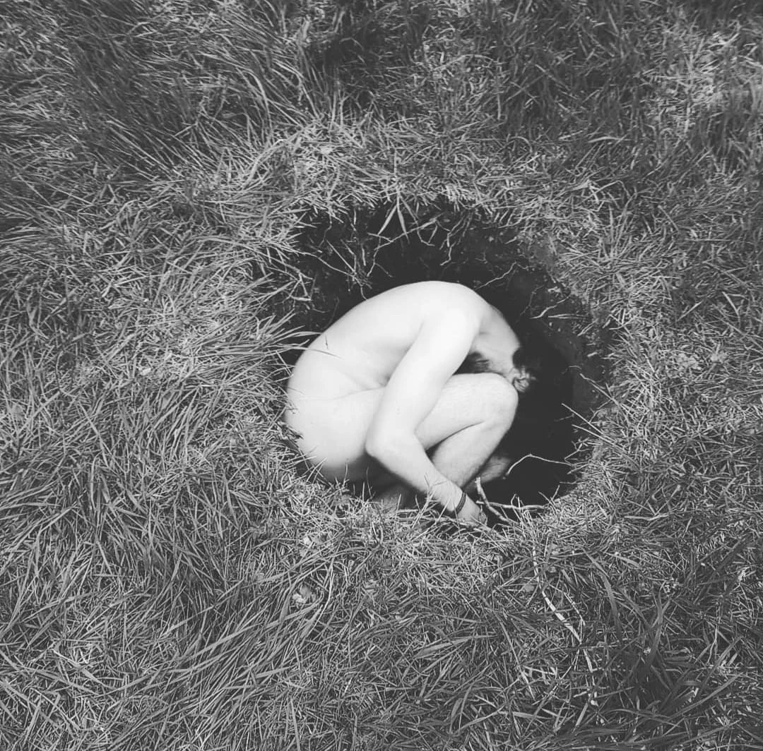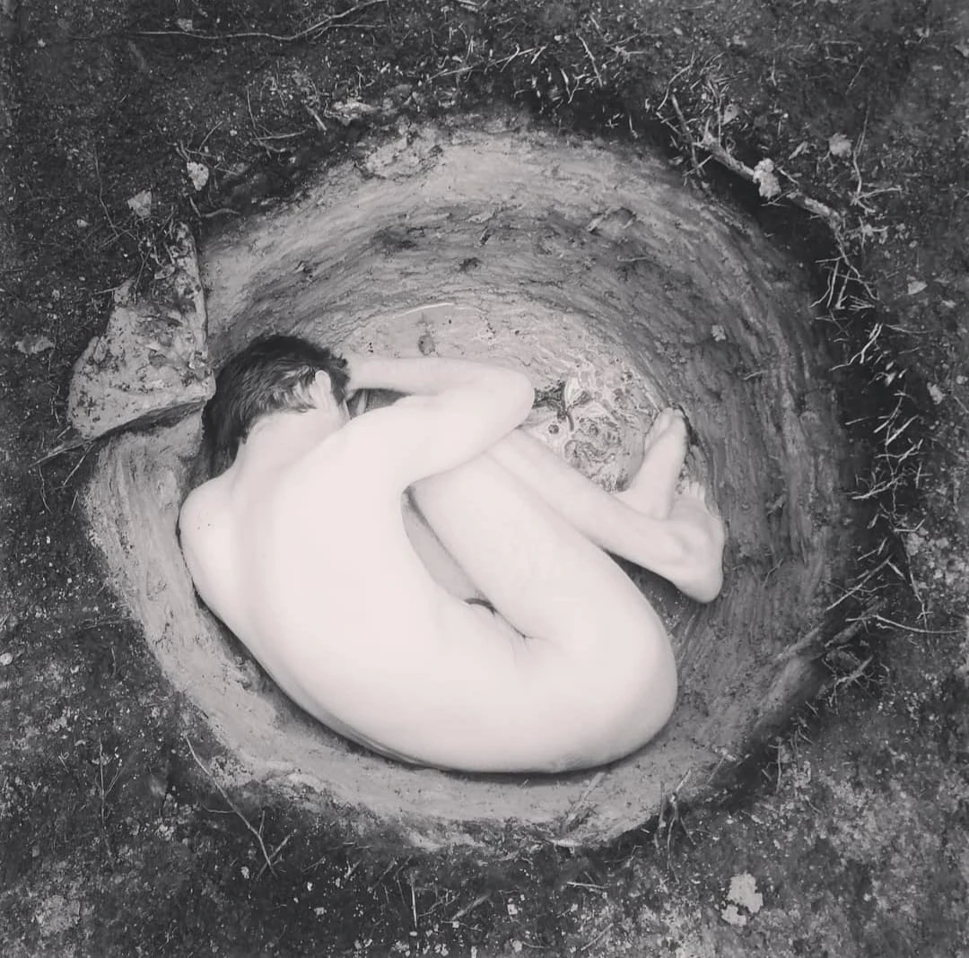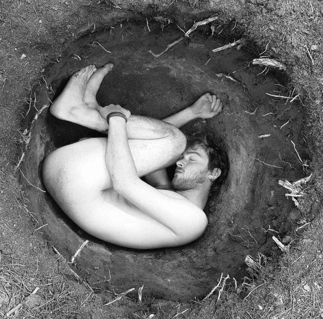 The holes become temporary sanctuaries: spaces to feel the weight of the world pressing in, to listen to the earth, and to rediscover the ground beneath us as something alive.