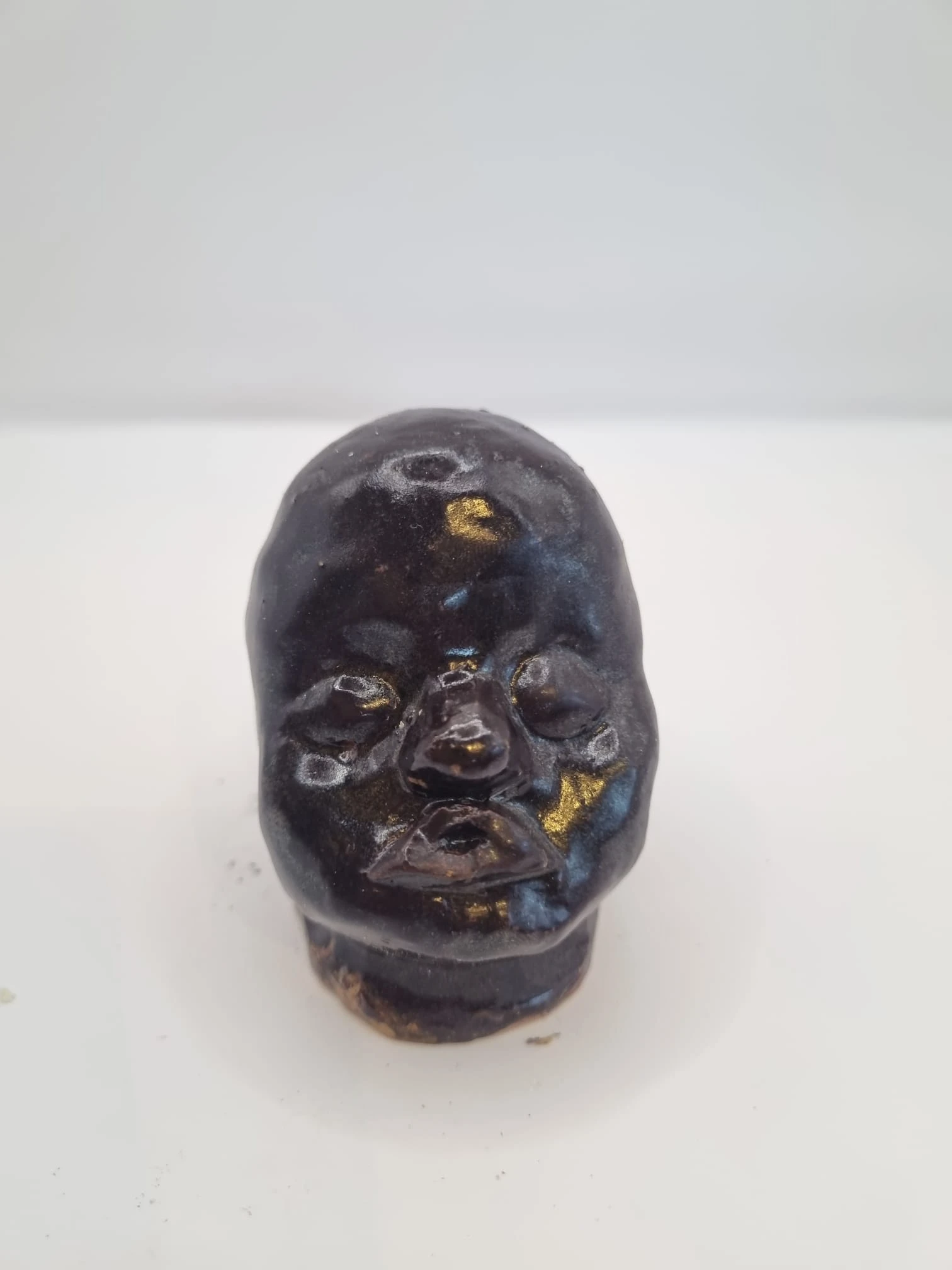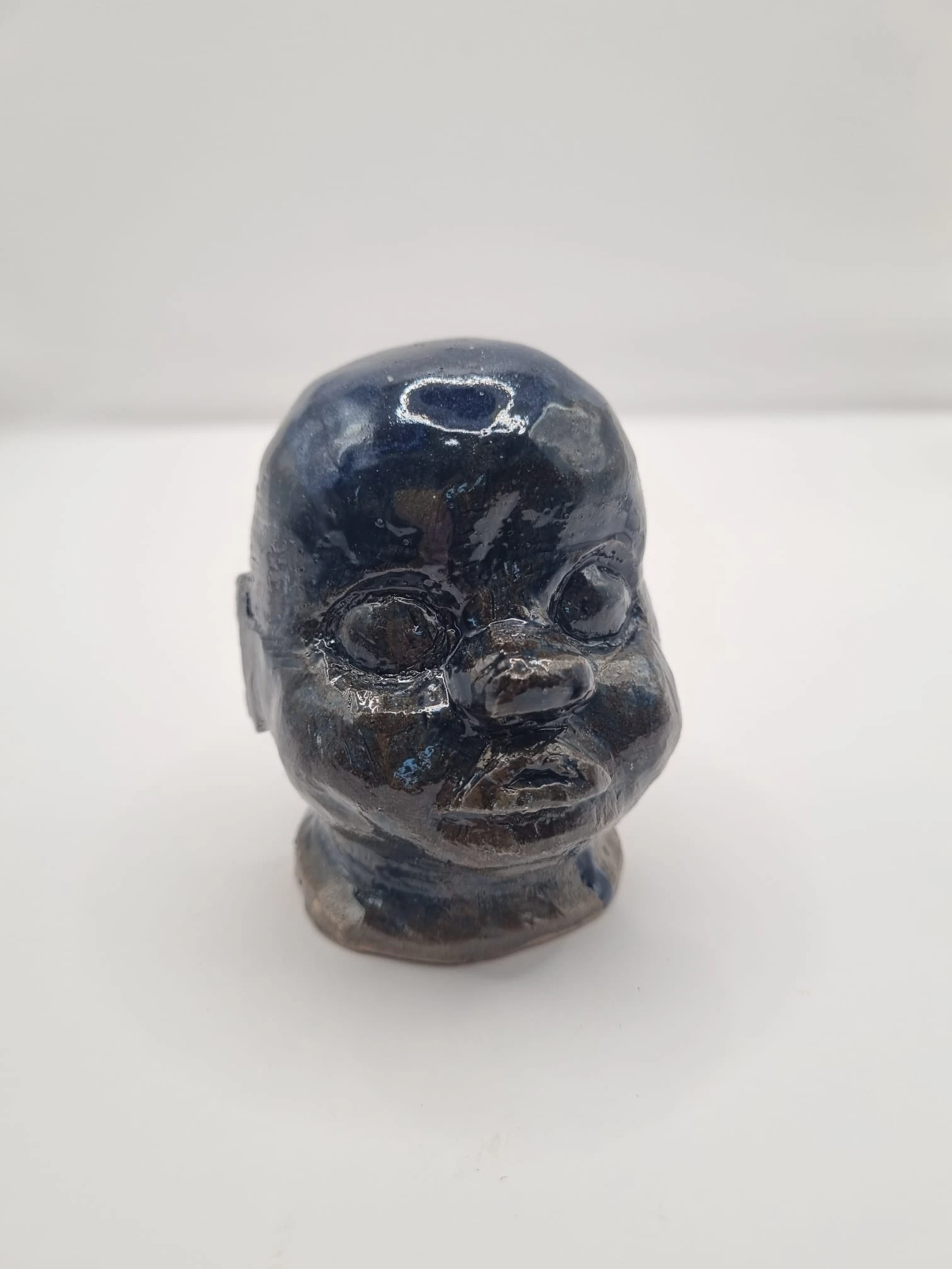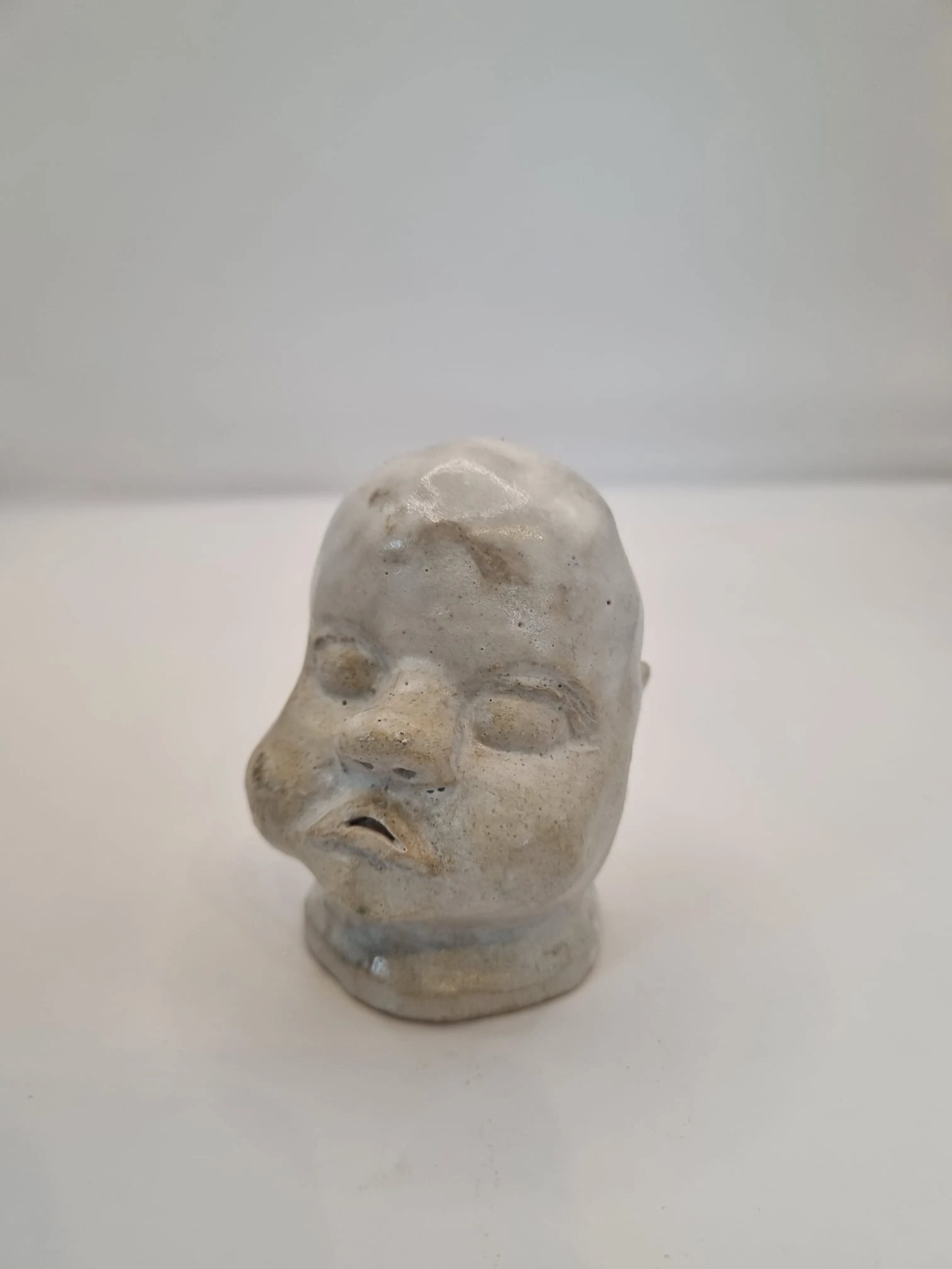 After forming, the heads are bisque fired. They are then finished using a range of experimental glazes, including: