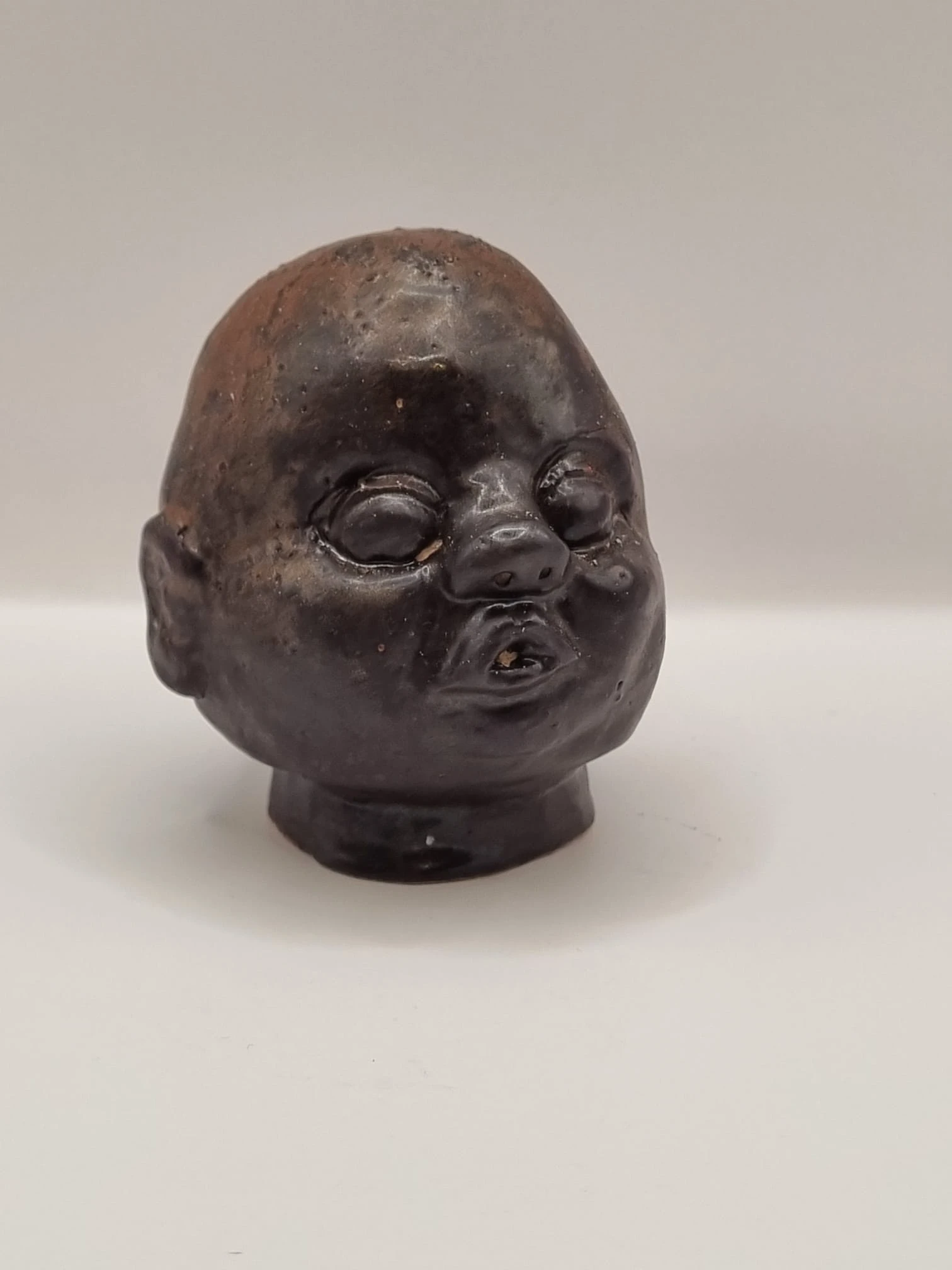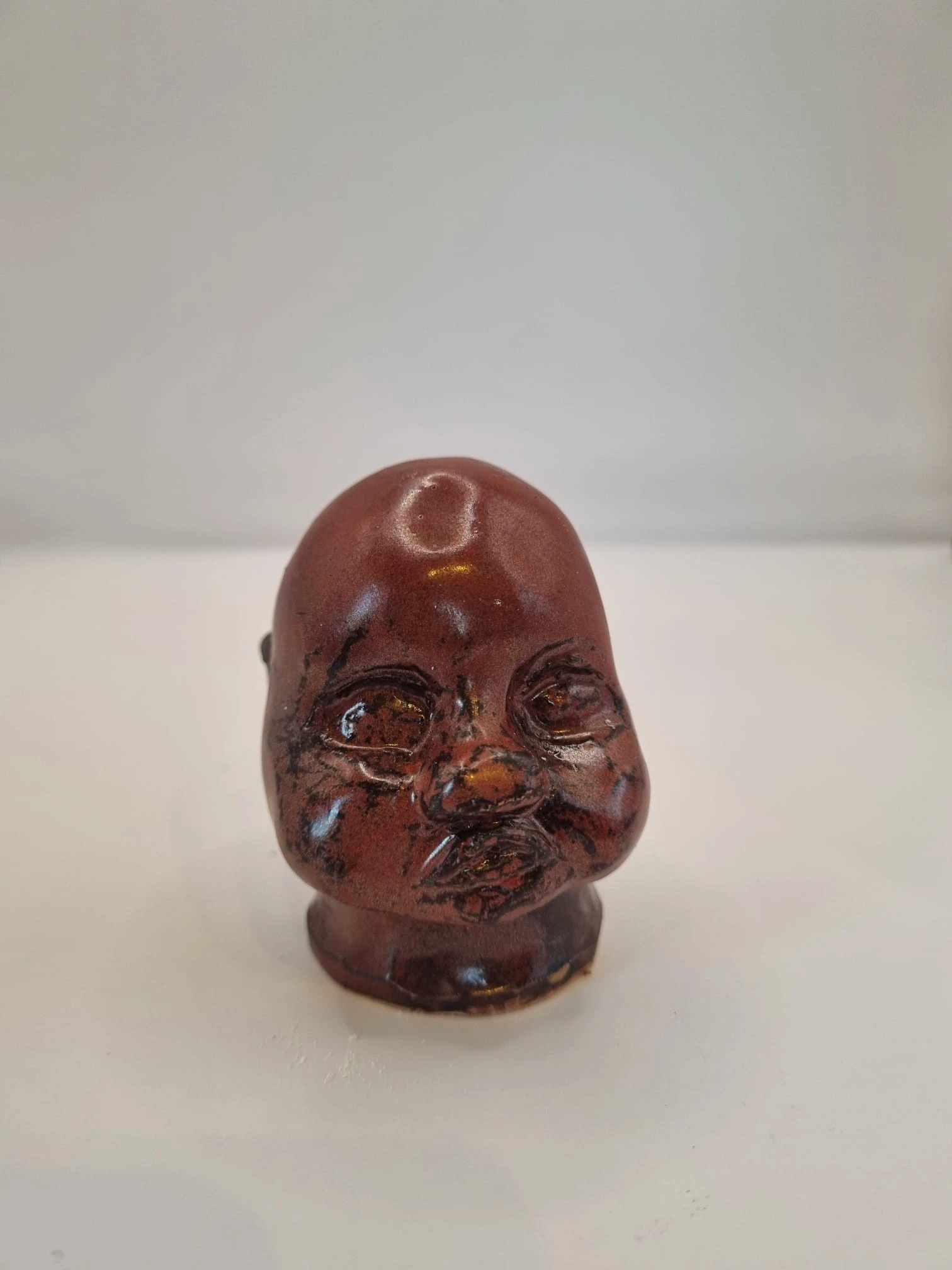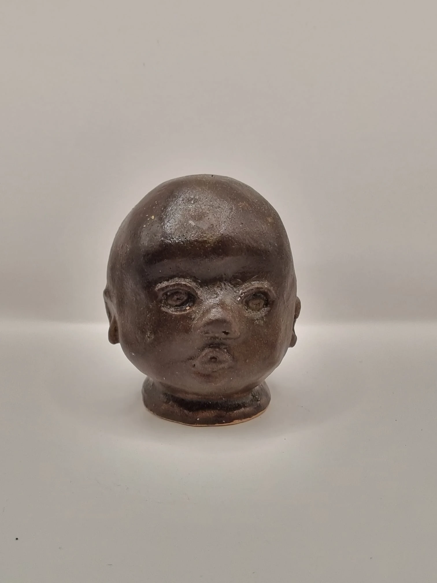 After forming, the heads are bisque fired. They are then finished using a range of experimental glazes, including:
